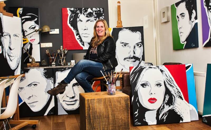 Dido graduated with a degree in graphic design from the Royal Academy of Fine Arts in Den Bosch. With over 30 years of experience as a graphic and interior designer at her own firm DidoDesign, she is an accomplished professional. Though skilled across disciplines, Dido is especially renowned as a painter, creating large-scale portraits of famous figures from the worlds of music, film, and pop culture. Her portraits are all original works, hand-painted in acrylic on canvas with nuanced brushwork and an eye for details. Dido exhibits her art internationally, with showings across Europe in cities like London, Malmö, Munich, Berlin, Tallinn, Düsseldorf, Kitzbühel, Strasbourg, and Paris.